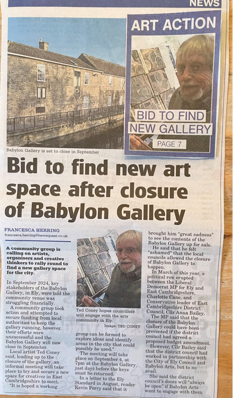 In September 2024, key stakeholders of the Babylon Gallery, in Ely, were told the community venue was struggling financially.