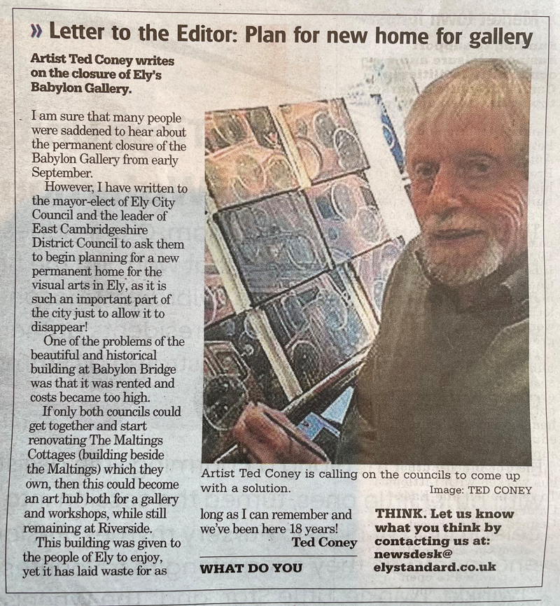 Artist Ted Coney writes on the closure of ely’s Babylon Gallery.