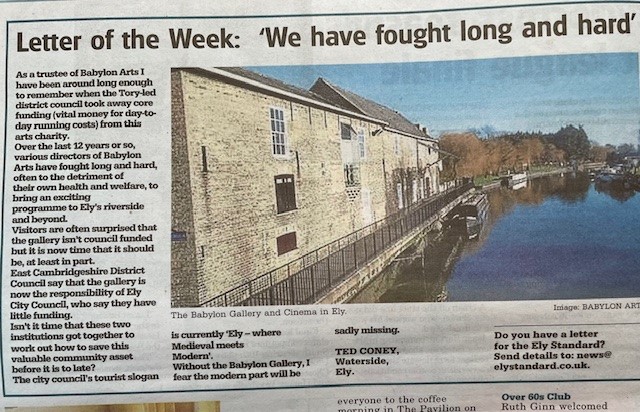 As a trustee of Babylon Arts I have been around long enough to remember when the Tory-led district council took away core funding (vital money for day-to-day running costs) from this arts charity.