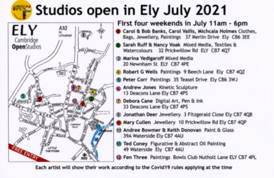 Artist Ted Coney is showing his paintings again on Ely’s Waterside as part of the Open Studio scheme.
