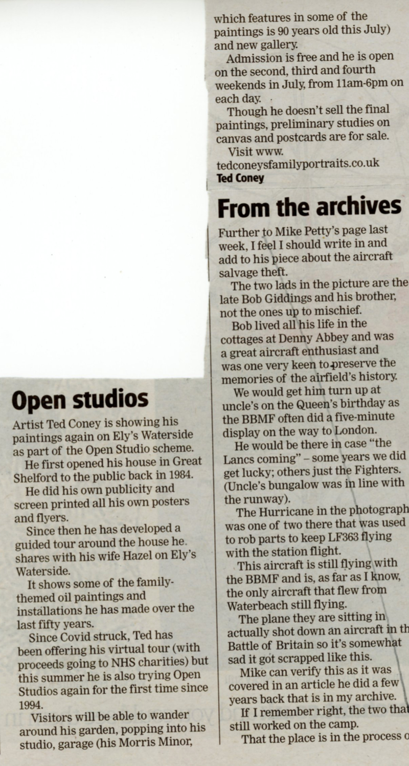 Since Covid struck, Ted has been offering his virtual tour (with proceeds going to NHS charities) but this summer he is also trying Open Studios again for the first time since 1994.