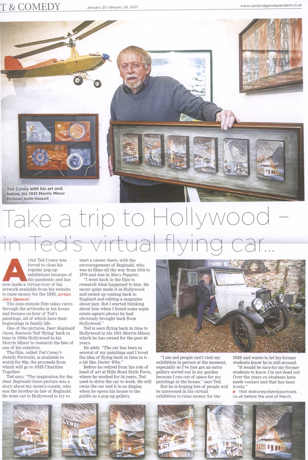 One of the pictures, Dear Reginald Owen, features Ted ‘flying’ back in time to the 1930s Hollywood in his Morris Minor to research the fate of one of his relatives.